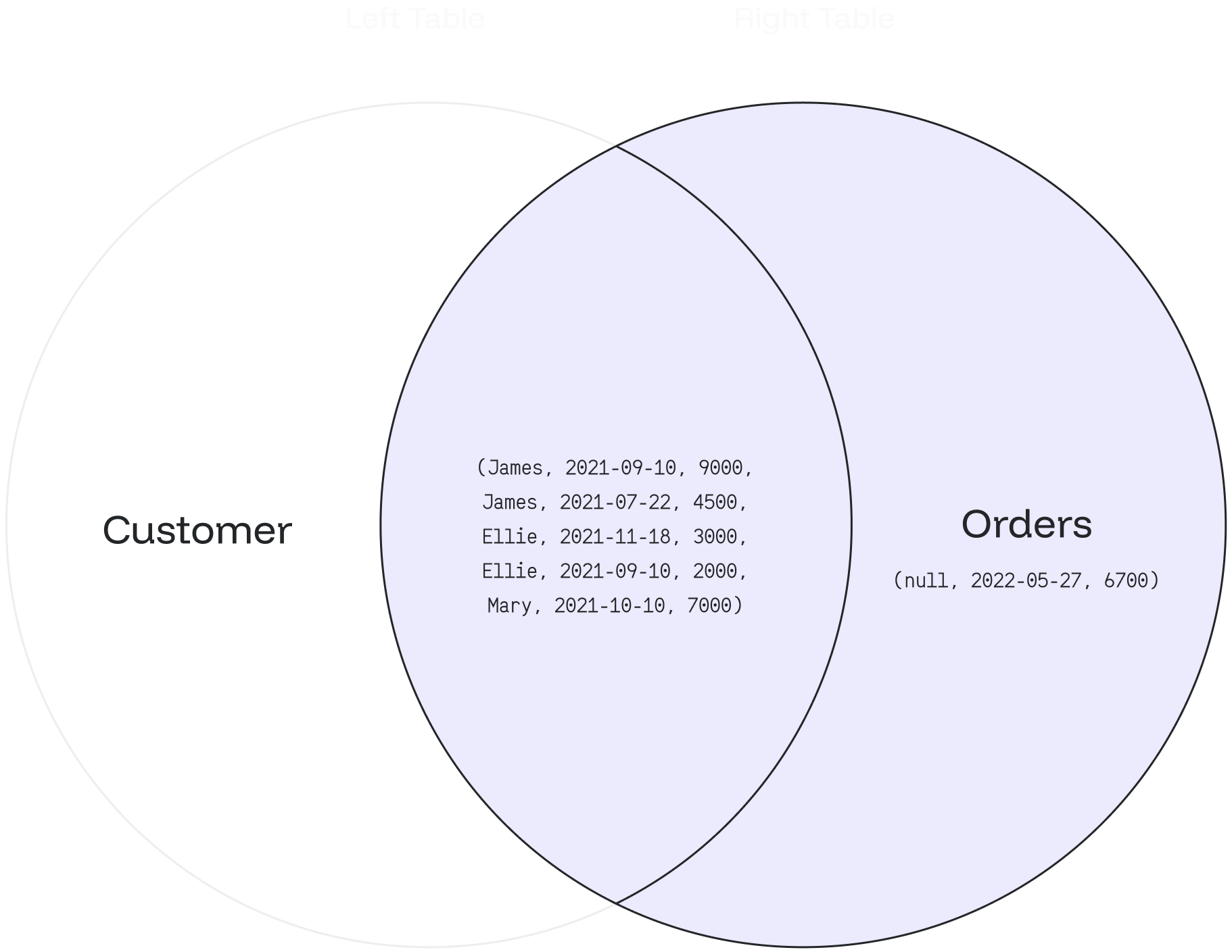 The RIGHT JOIN returns all matching records from the right table combined with the left table. Even if there are no match records in the left table, the RIGHT JOIN will still return a row in the result, but with NULL in each column from the left table.